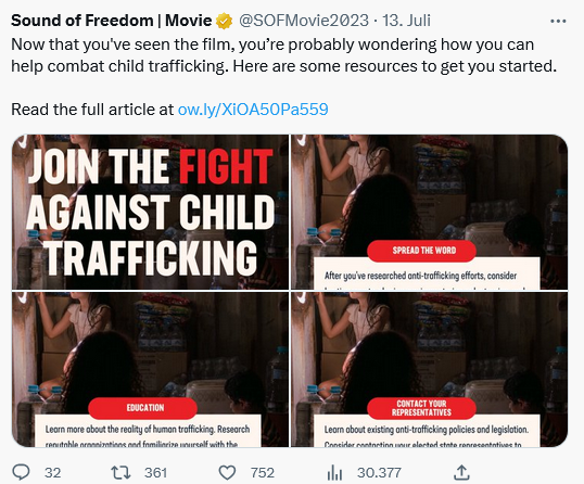 Es ist wichtig zu betonen, dass niemand die Existenz von Kinderhandel und seine Schrecken leugnet. Diejenigen, die ihr Leben dem Schutz von Kindern widmen und gegen diejenigen kämpfen, die versuchen, sie auszunutzen, wissen aus erster Hand, dass Kinderhandel nicht nur real ist, sondern dass die Realität sogar noch schrecklicher sein kann als das, was in teuren Thrillern gezeigt wird. Ihre Hoffnung ist, dass Zuschauer von „Sound of Freedom“ sich mit seriösen Organisationen in Verbindung setzen, um die Wahrheit darüber zu erfahren, wie Kinderhandel aussieht und wie sie helfen können. Es ist nicht notwendig, Verschwörungstheorien über Kindesmissbrauch zu erfinden, wenn es doch genügend Fakten gibt, die sich nicht auf schreckliche Gerüchte stützen.